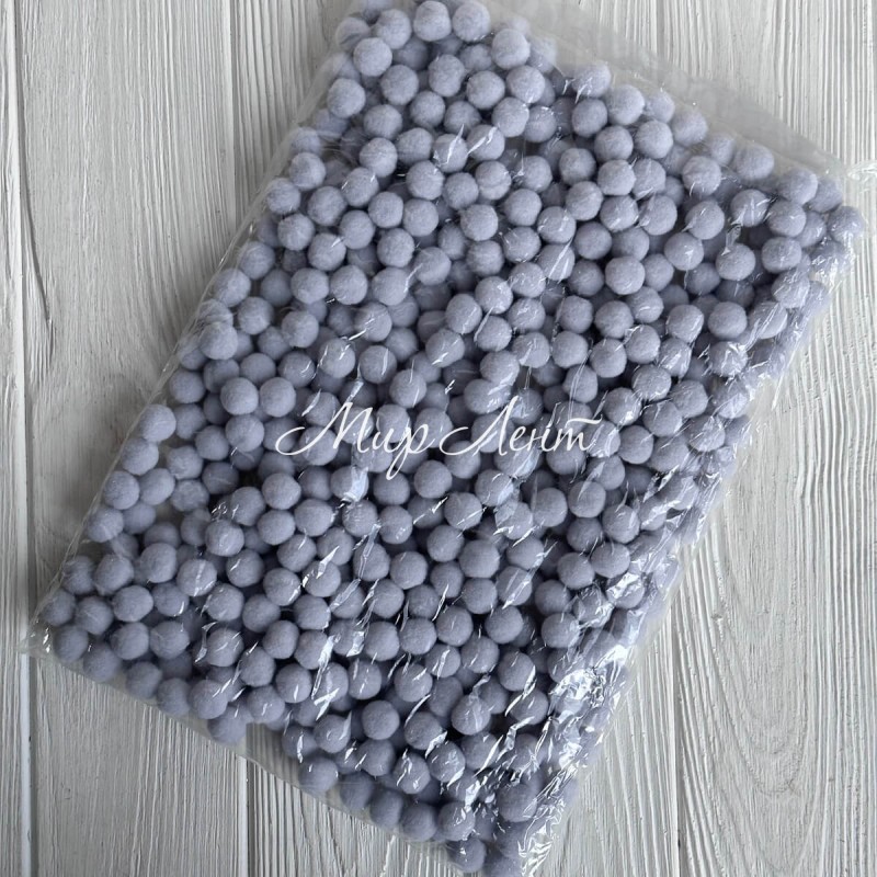 Помпоны бархатные (пастельные), 1,5 см, серые, упаковка 500 шт.