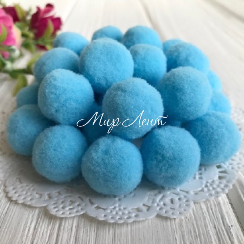 Помпоны бархатные, 2 см, светло-бирюзовый, упаковка 500 шт.