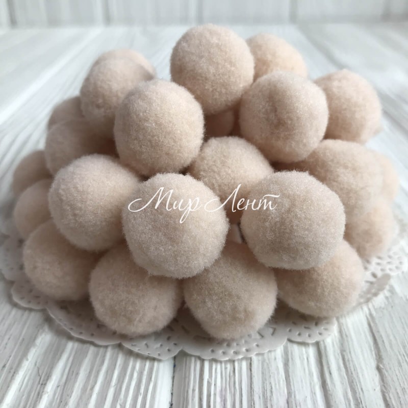 Помпоны бархатные, 2 см, светло-пудровый, упаковка 500 шт.