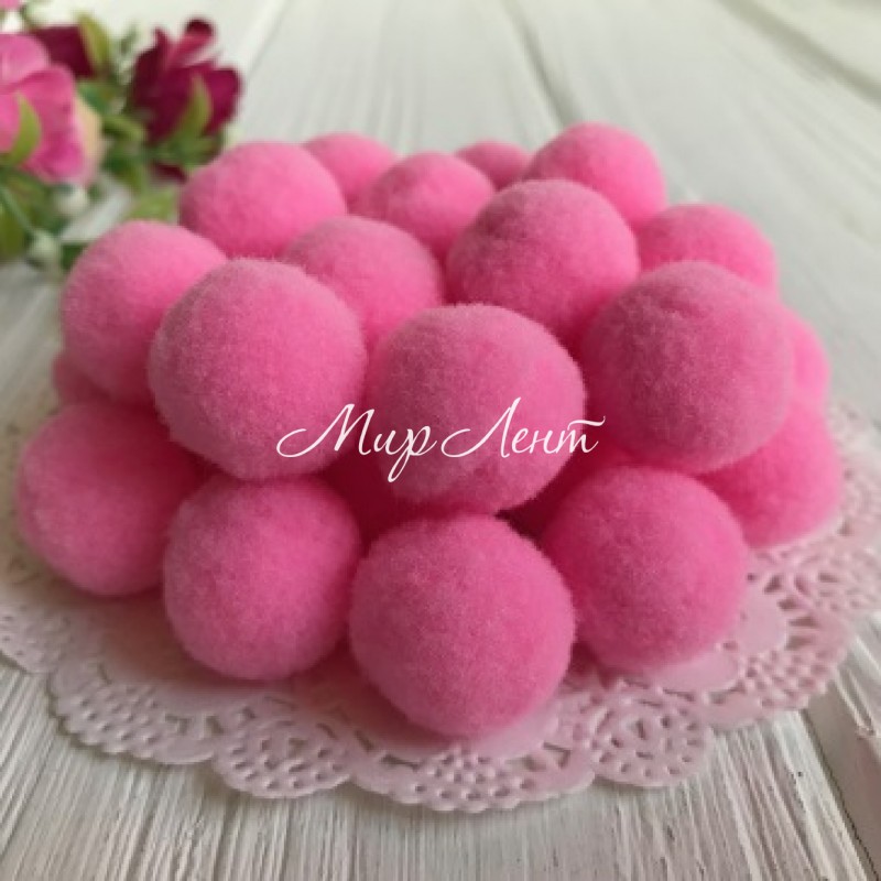 Помпоны бархатные, 2 см, ярко-розовый, упаковка 500 шт.
