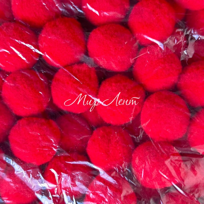 Помпоны бархатные (пастельные), 2,5 см, красные, упаковка 250 шт.