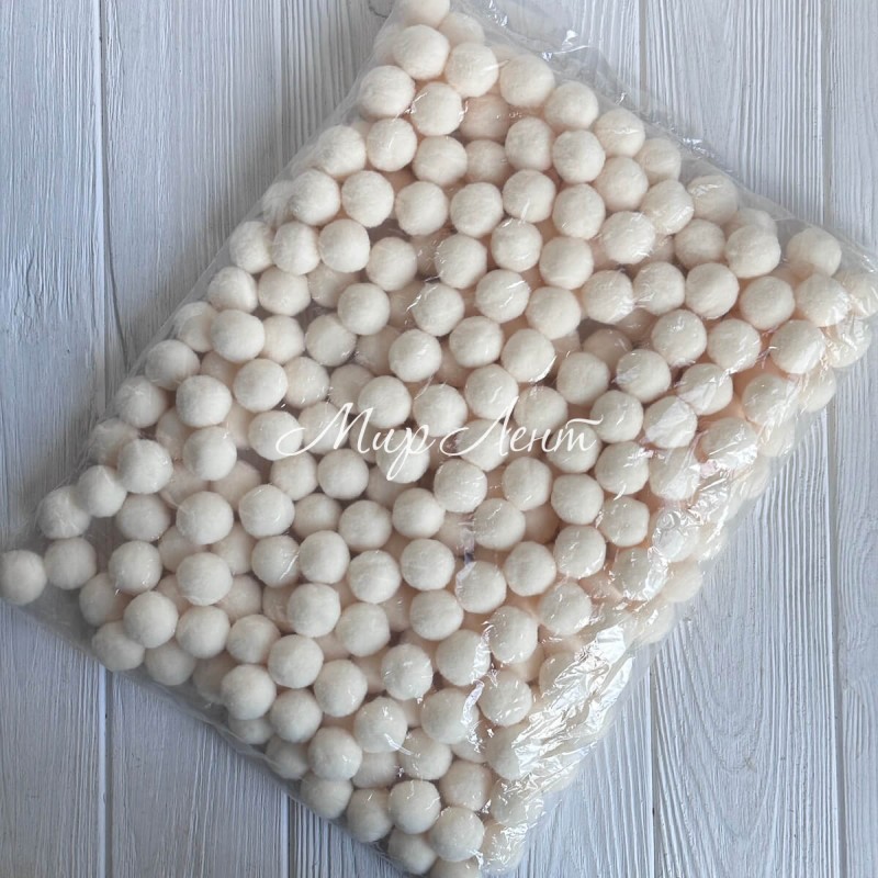 Помпоны бархатные (пастельные), 2,5 см, молочные, упаковка 250 шт.