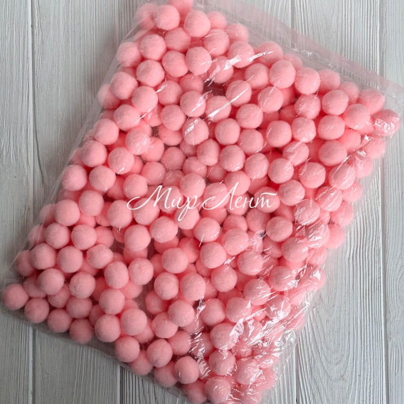 Помпоны бархатные (пастельные), 2,5 см, персиково-розовые, упаковка 250 шт.