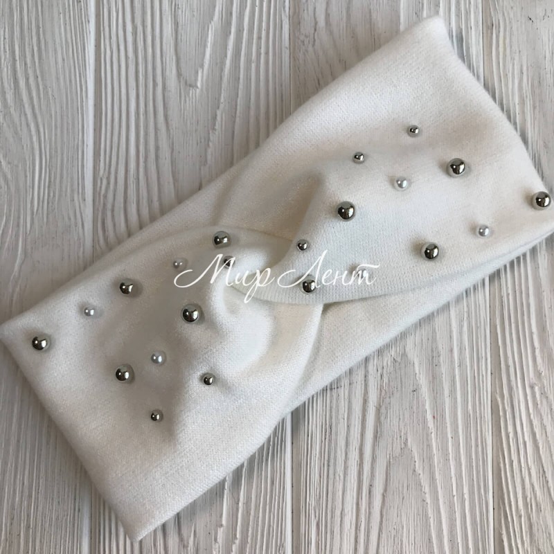 Повязка ангора с микс жемчугом, 10,5 см, белая, шт.