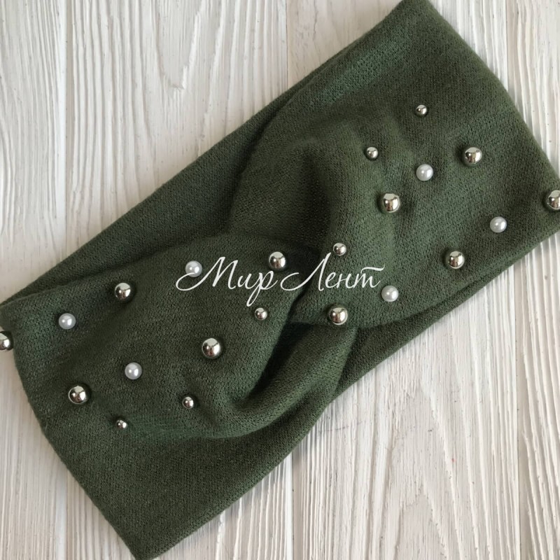 Повязка ангора с микс жемчугом, 10,5 см, хаки, шт.