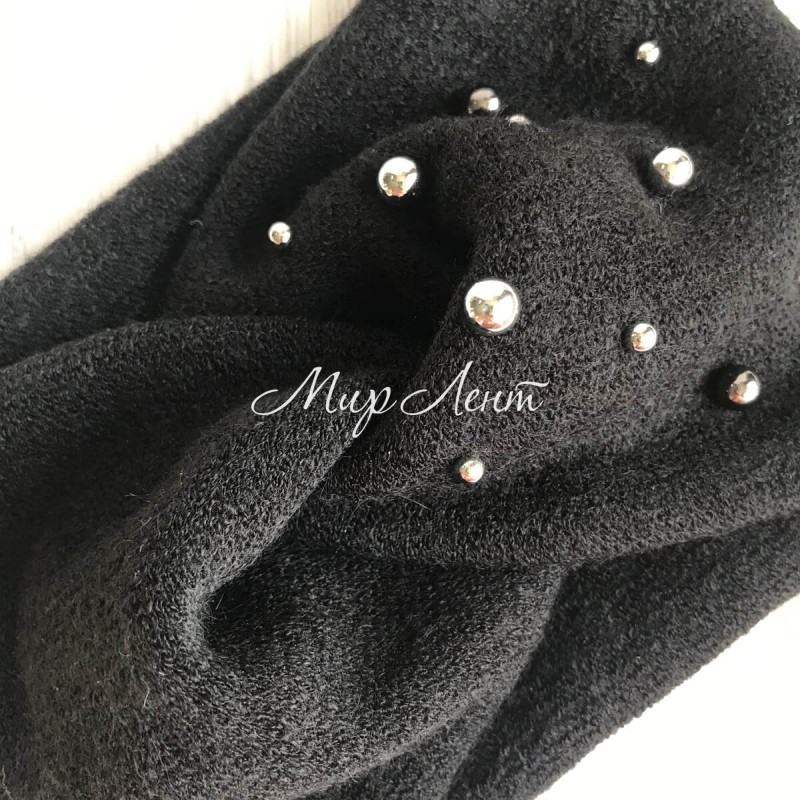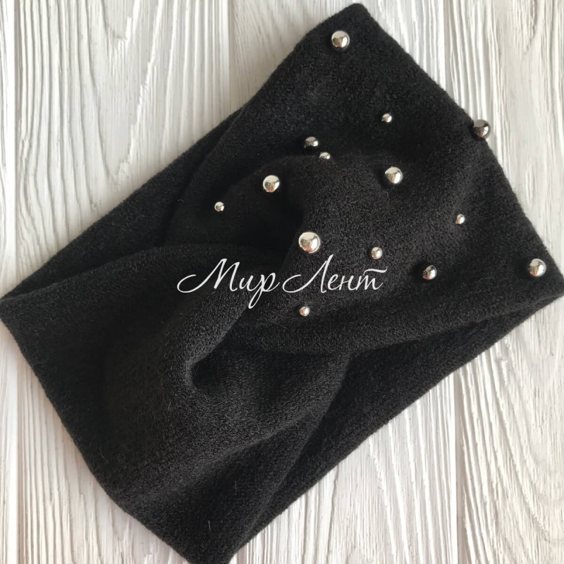 Повязка ангора широкая с жемчугом, 13 см, черная, шт.