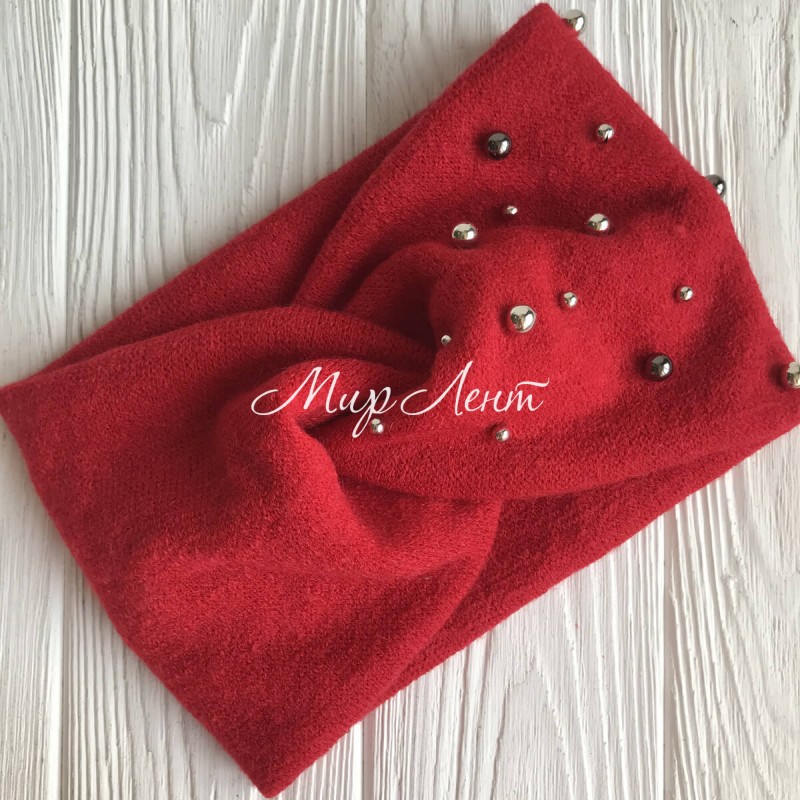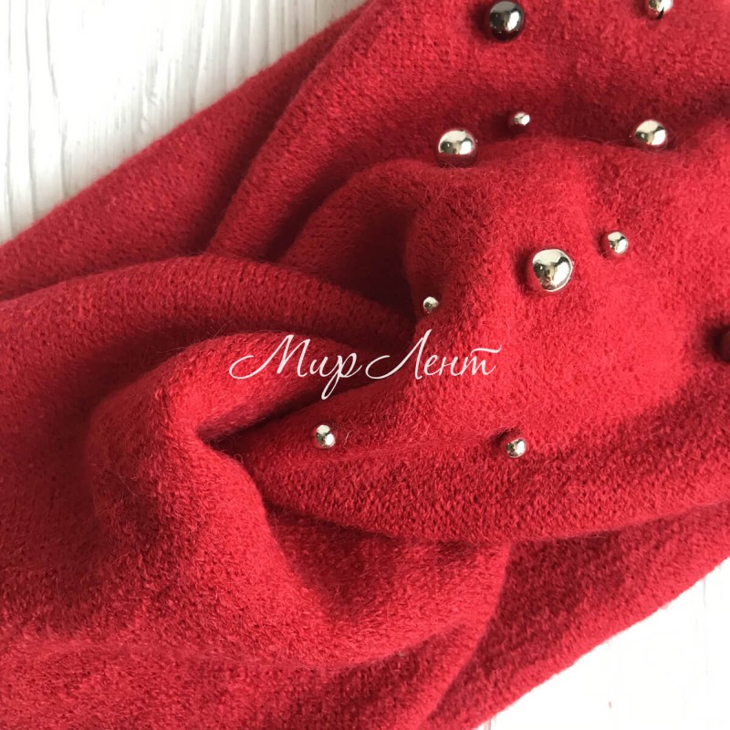 Повязка ангора широкая с жемчугом, 13 см, красная, шт.