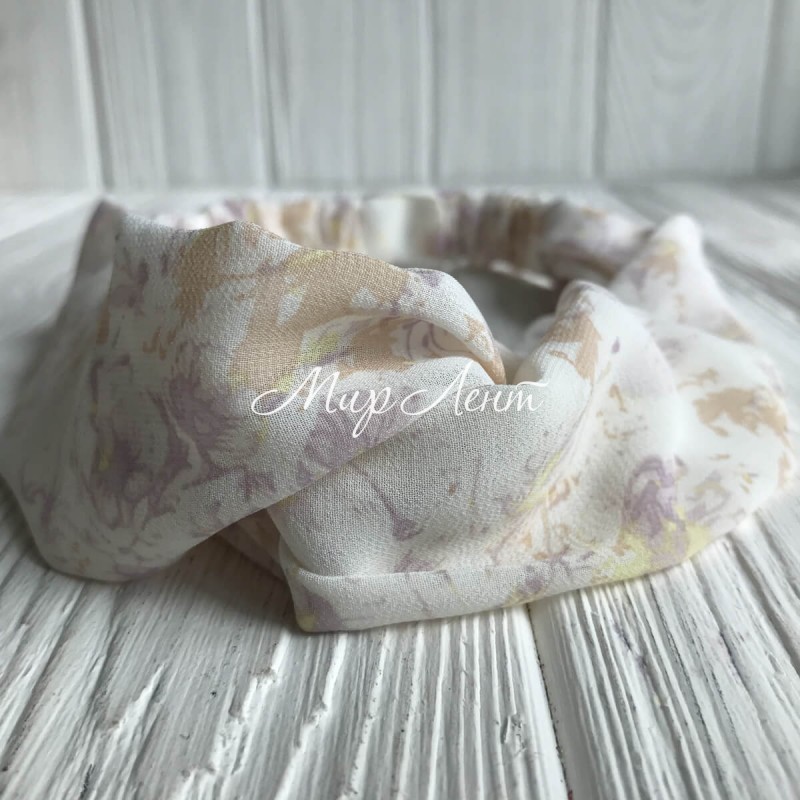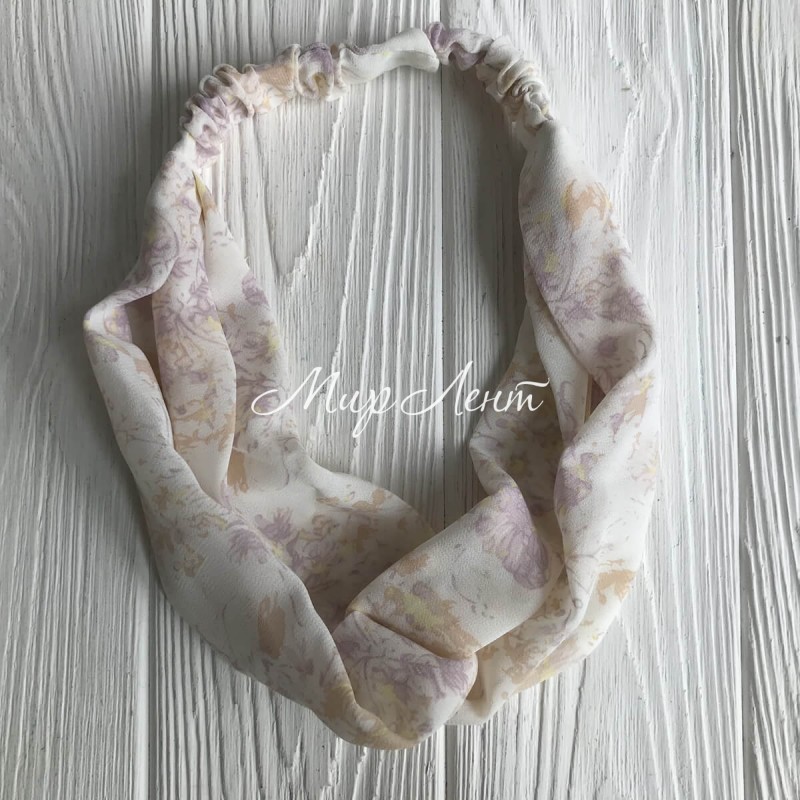 Повязка-переплет шифон в цветочек, 6 см, молочно-сиреневый, шт.