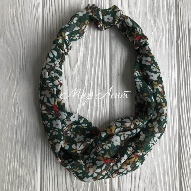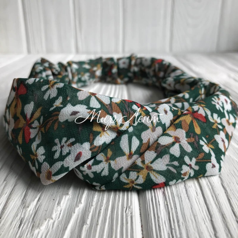 Повязка-переплет шифон в цветочек, 6 см, темно-зеленый, шт.