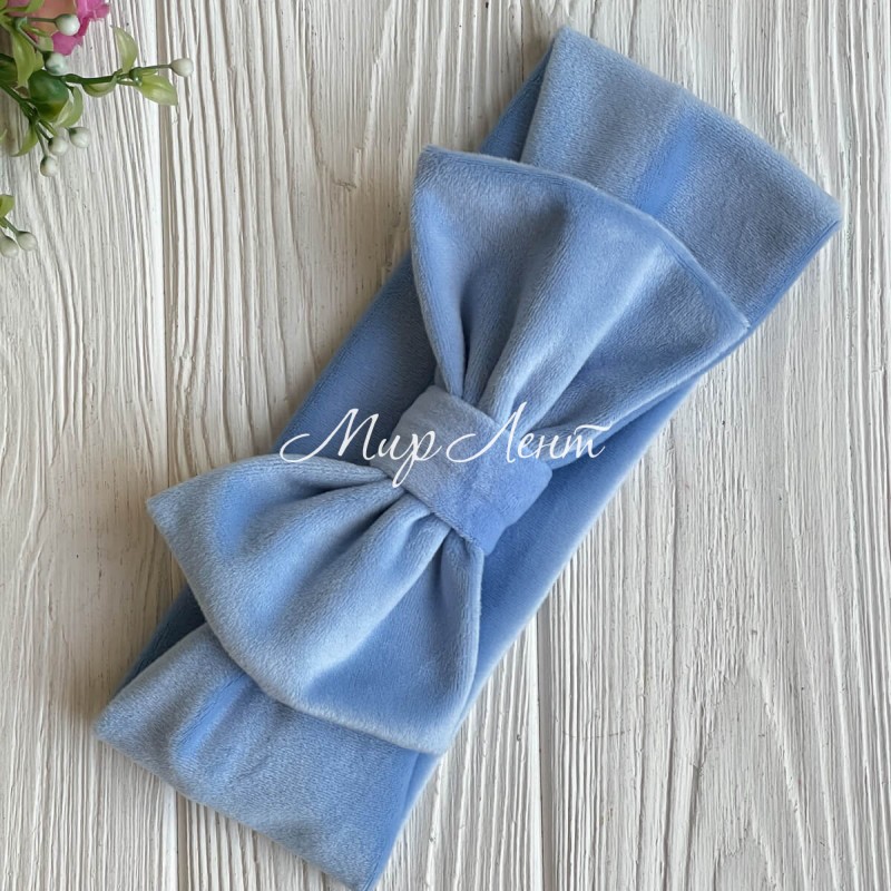 Повязка спорт велюр c бантом mini, 9х20 см, голубая, шт.
