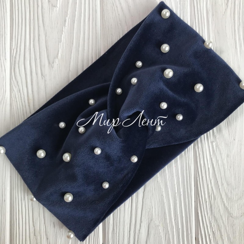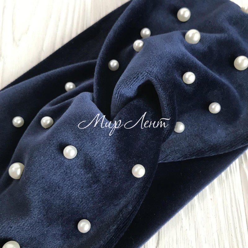 Повязка спорт велюр с жемчугом, 11 см, сапфировый, шт.