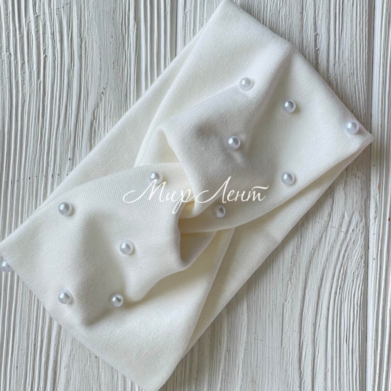 Повязка трикотаж детская с жемчугом, 9х15 см, молочная, шт.