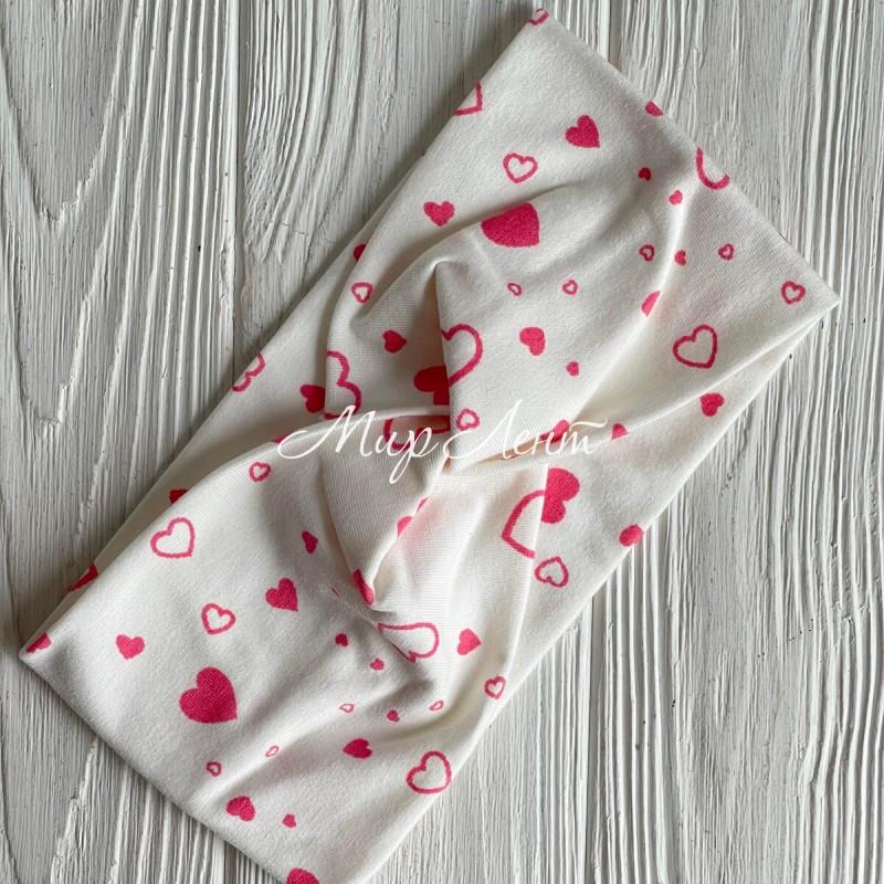 Повязка турецкий трикотаж, 21х10 см, белая с малиновыми сердечками, шт.