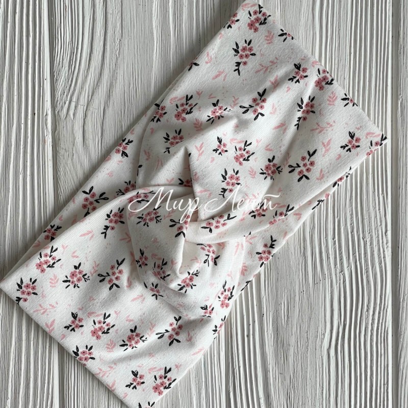 Повязка турецкий трикотаж, 21х10 см, белая с пудровыми цветочками, шт.