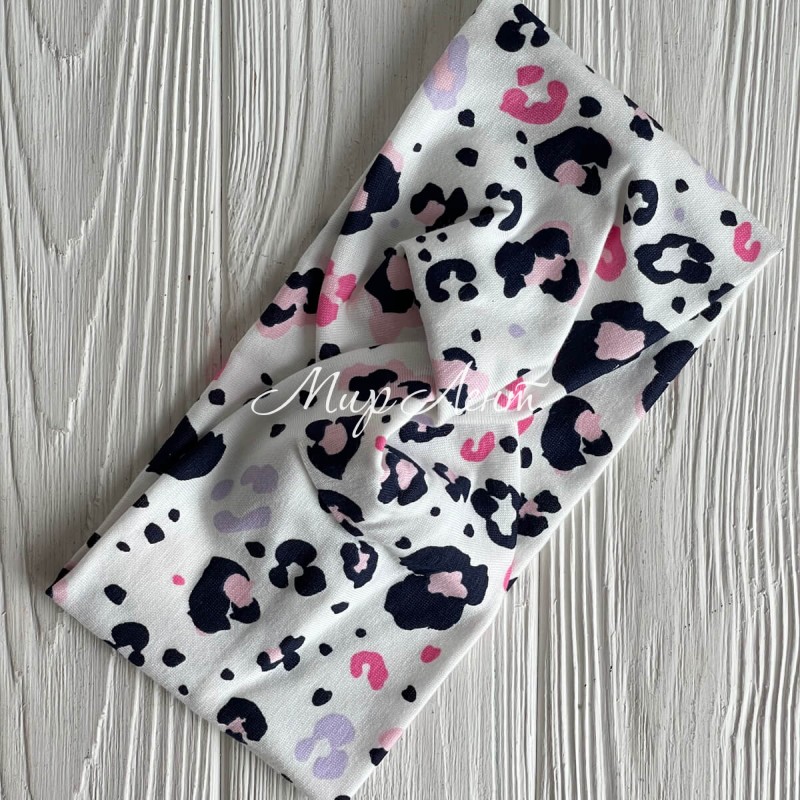 Повязка турецкий трикотаж, 21х10 см, белая с розово-черным леопардом, шт.