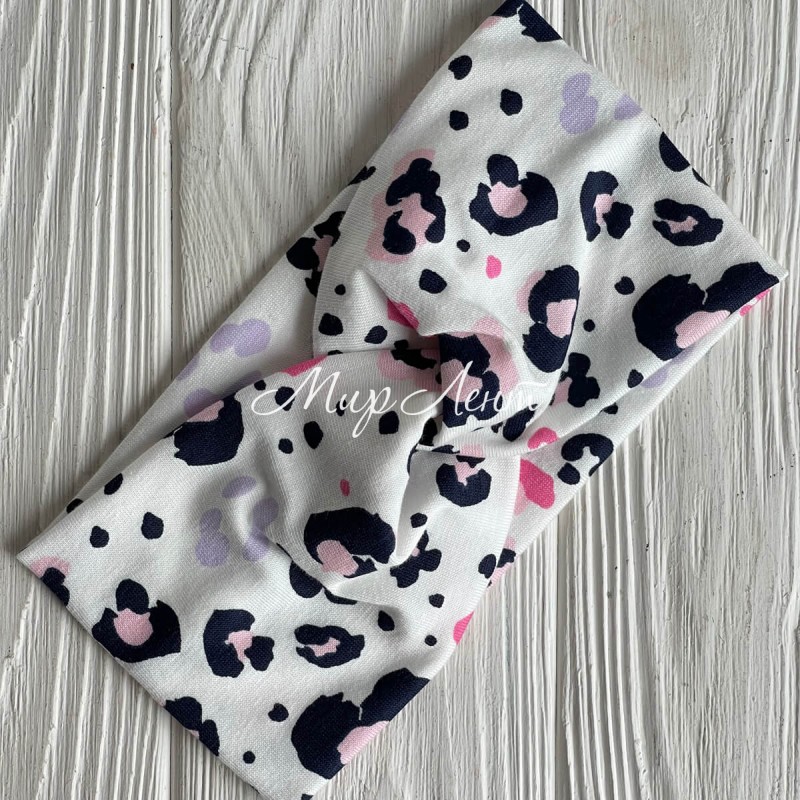 Повязка турецкий трикотаж (малютка), 17х9 см, белая с розово-черным леопардом, шт.