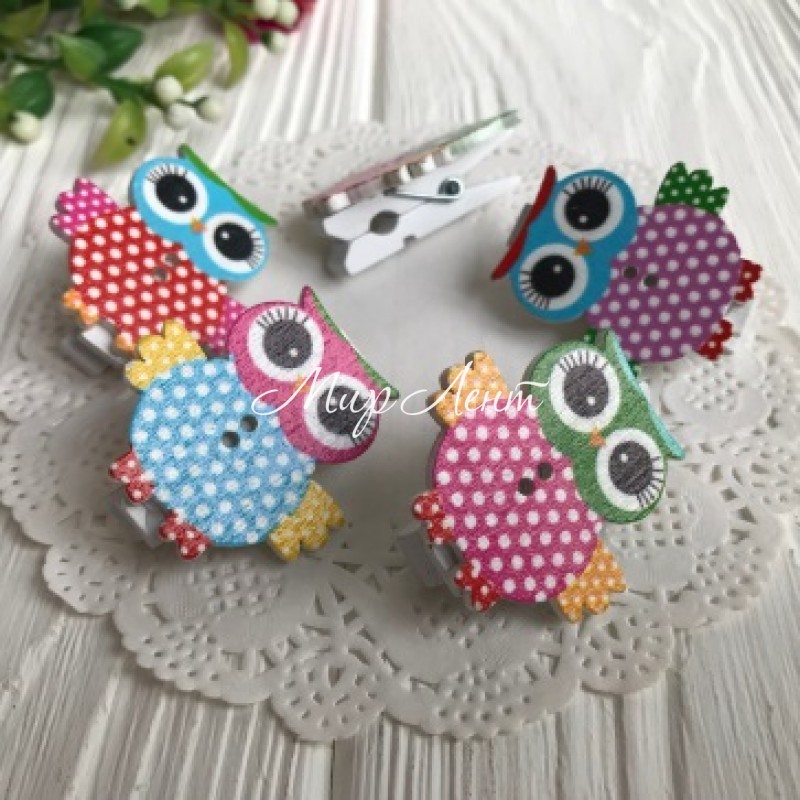 Прищепка-декор, 3х2 см, сова (цветной микс), упаковка 12 шт.