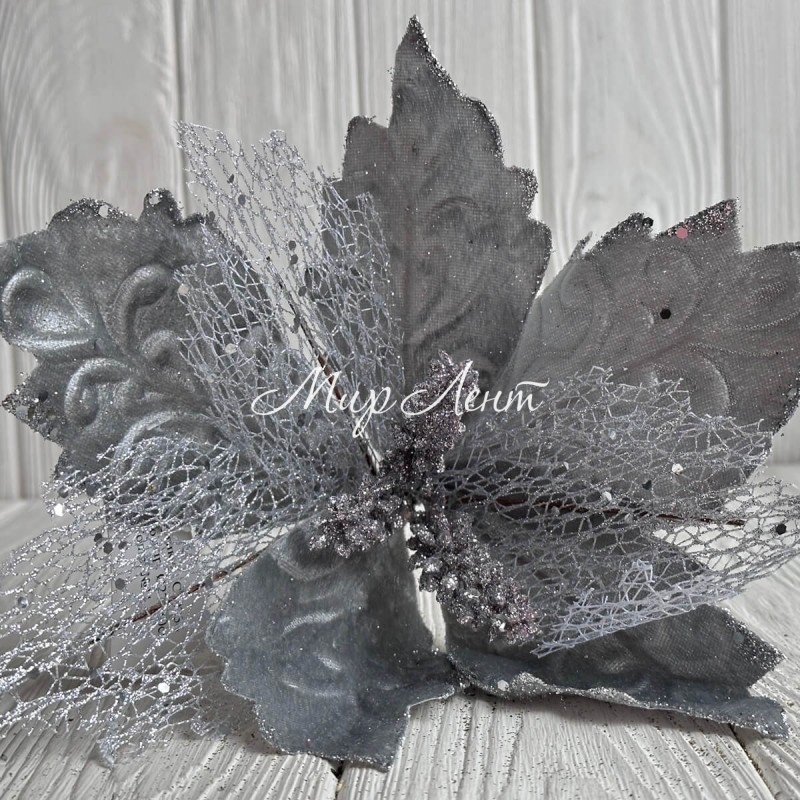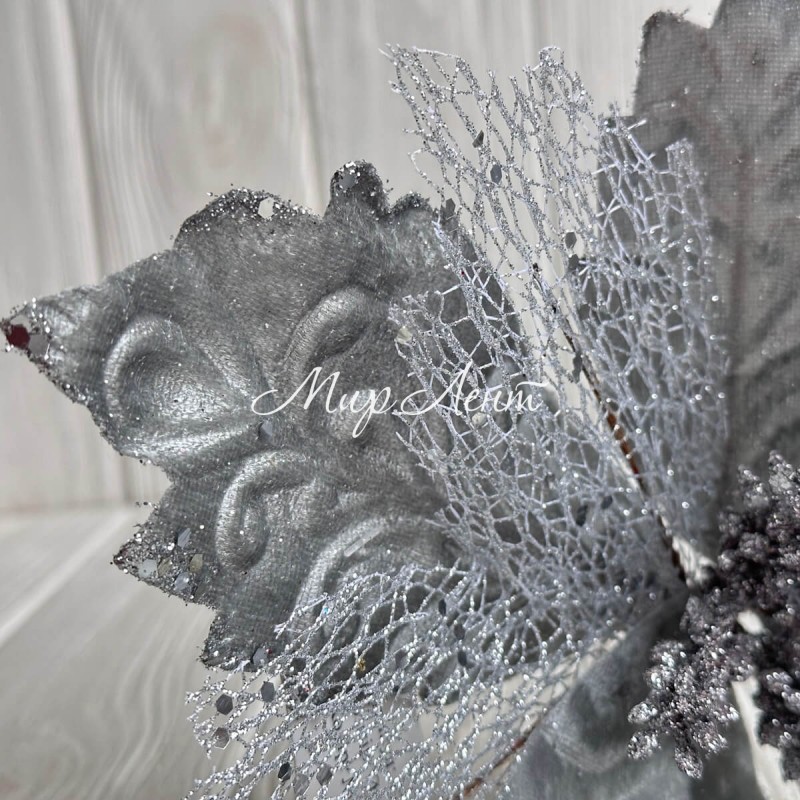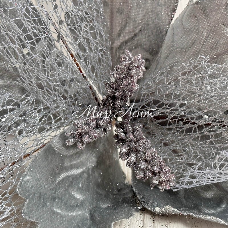 Пуансеттия бархатна (С30256), 27х30 см, серебряная, шт.