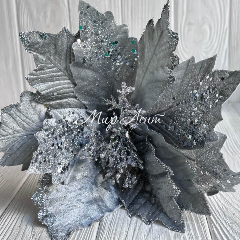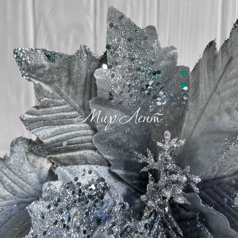 Пуансеттия бархатная (С30259), 29х30 см, серебряная, шт.