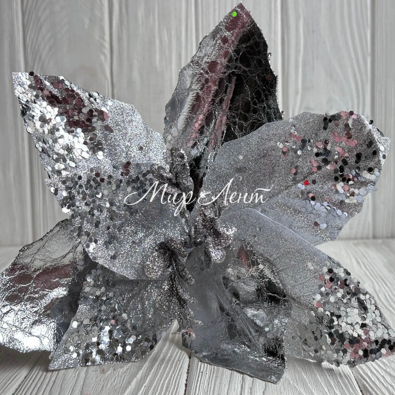 Пуансеттия бархатная (С30260), 30х30 см, серебряная, шт.