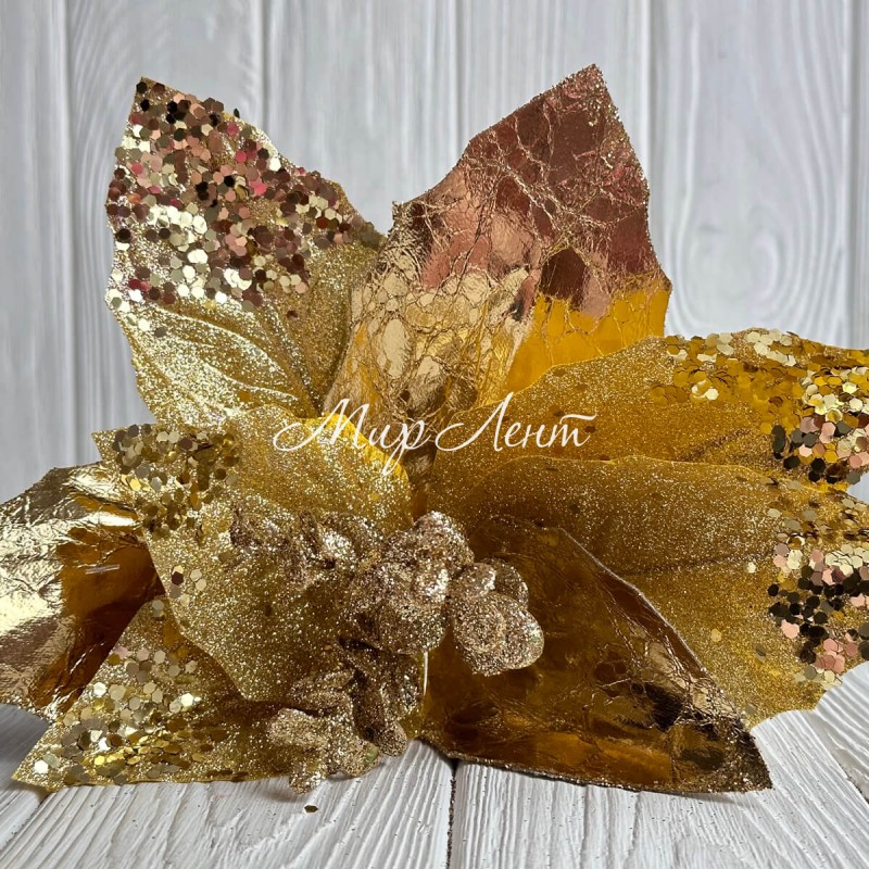 Пуансеттия бархатная (С30260), 30х30 см, золотая, шт.