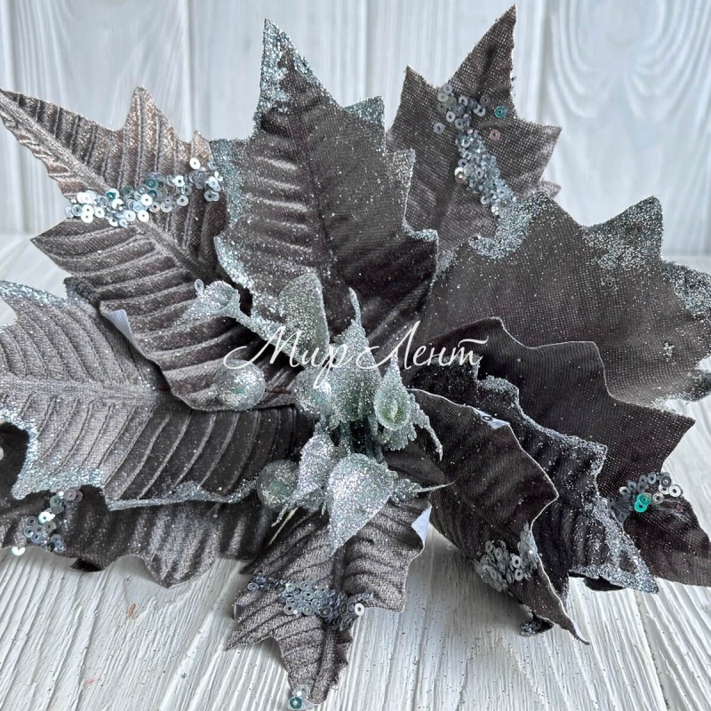 Пуансеттия бархатная (С30262), 26х30 см, графитовая, шт.