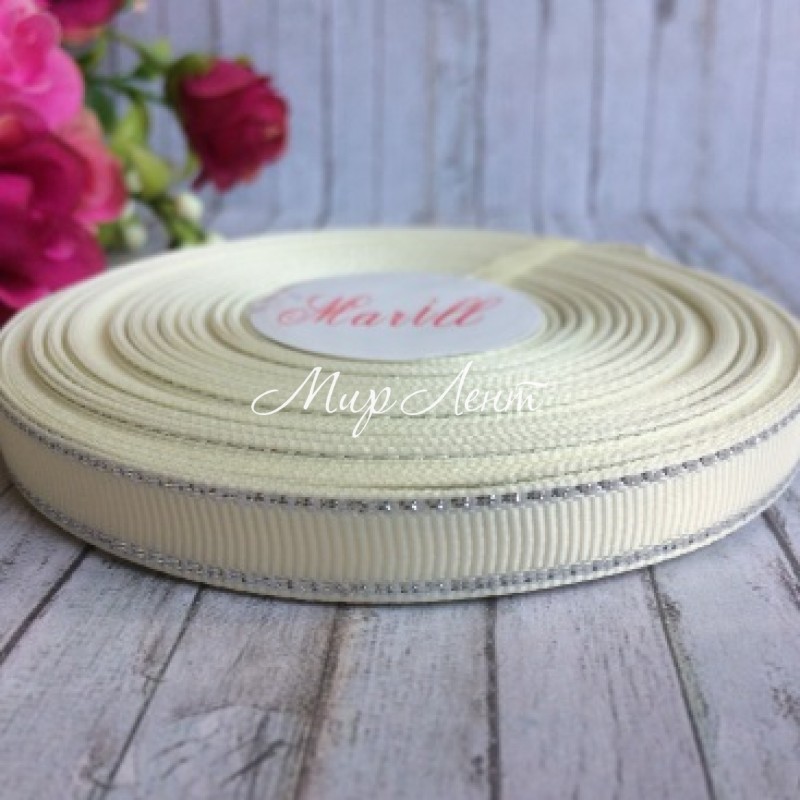 Репс 0,9 см люрекс (серебро), молочный, рулон 23 м