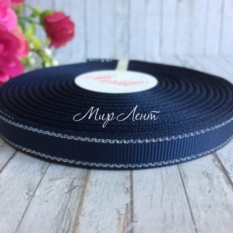 Репс 0,9 см люрекс (серебро), сапфировый, рулон 23 м