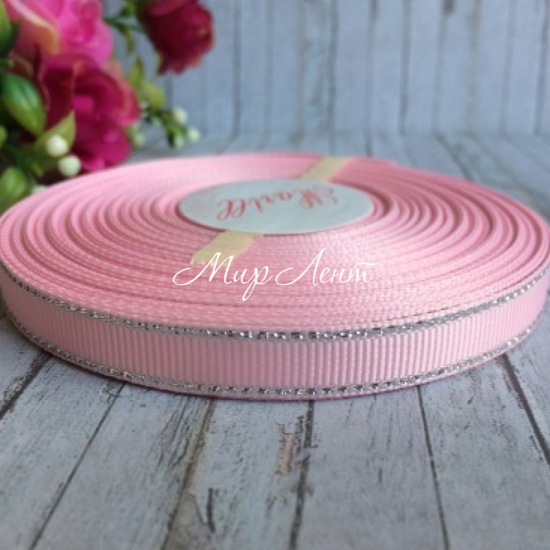 Репс 0,9 см люрекс (серебро), светло-розовый, рулон 23 м