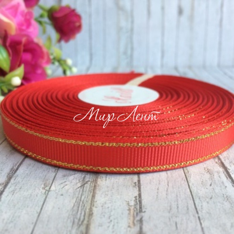 Репс 0,9 см люрекс (золото), красный, рулон 23 м