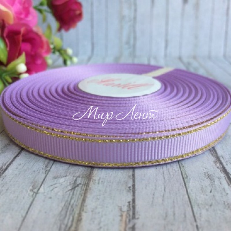 Репс 0,9 см люрекс (золото), лиловый, рулон 23 м