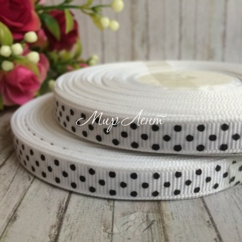 Репс 1 см горох, бело-черный, 23 м в рулоне