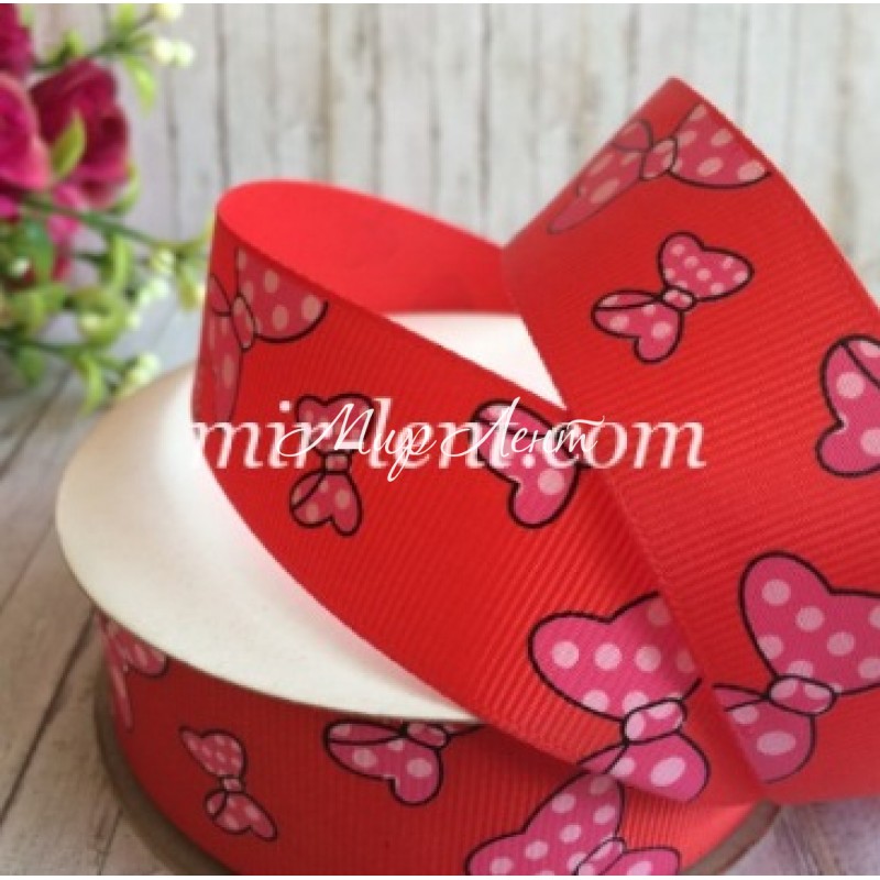 Репс 2,5 см, бантики, красный, рулон 23 м