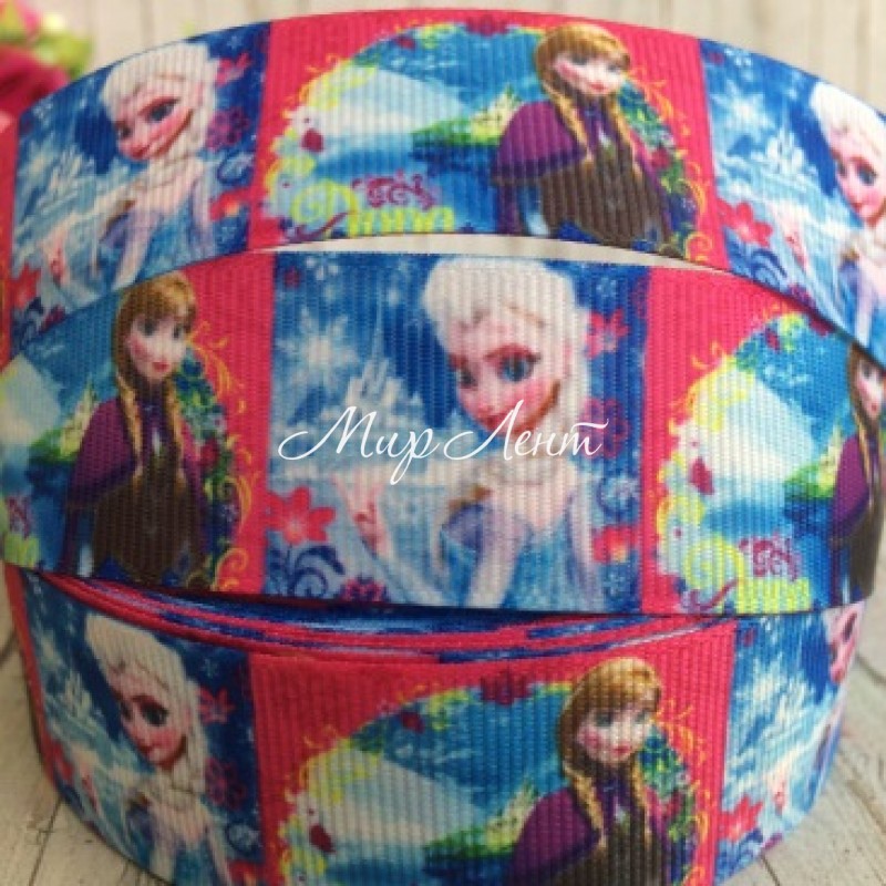 Репс 2,5 см, Эльза и Анна, малиново-синии квадраты, рулон 23 м