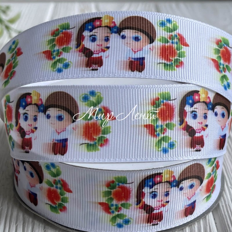 Репс 2,5 см, мальчик и девочка украинцы, белый, рулон 23 м