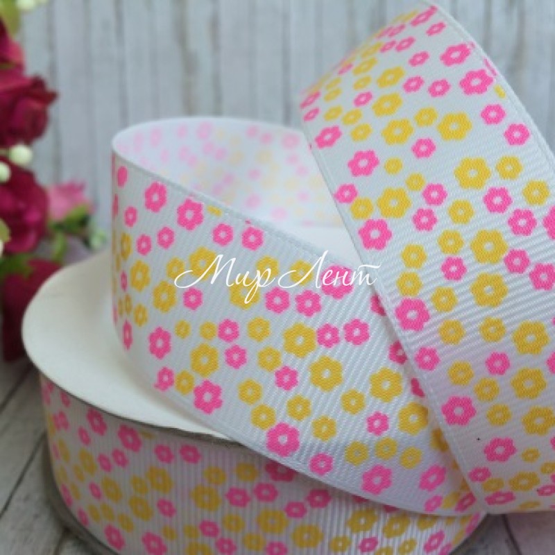 Репс 2,5 см, маленький цветочек, белый, рулон 23 м