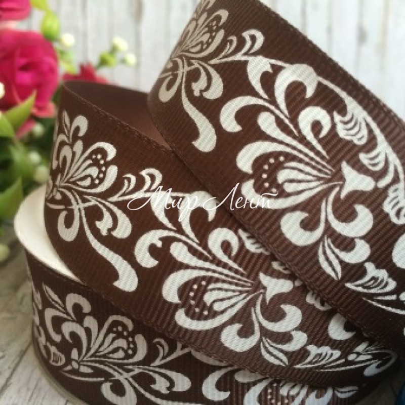 Репс 2,5 см, орнамент, шоколадный, рулон 23 м