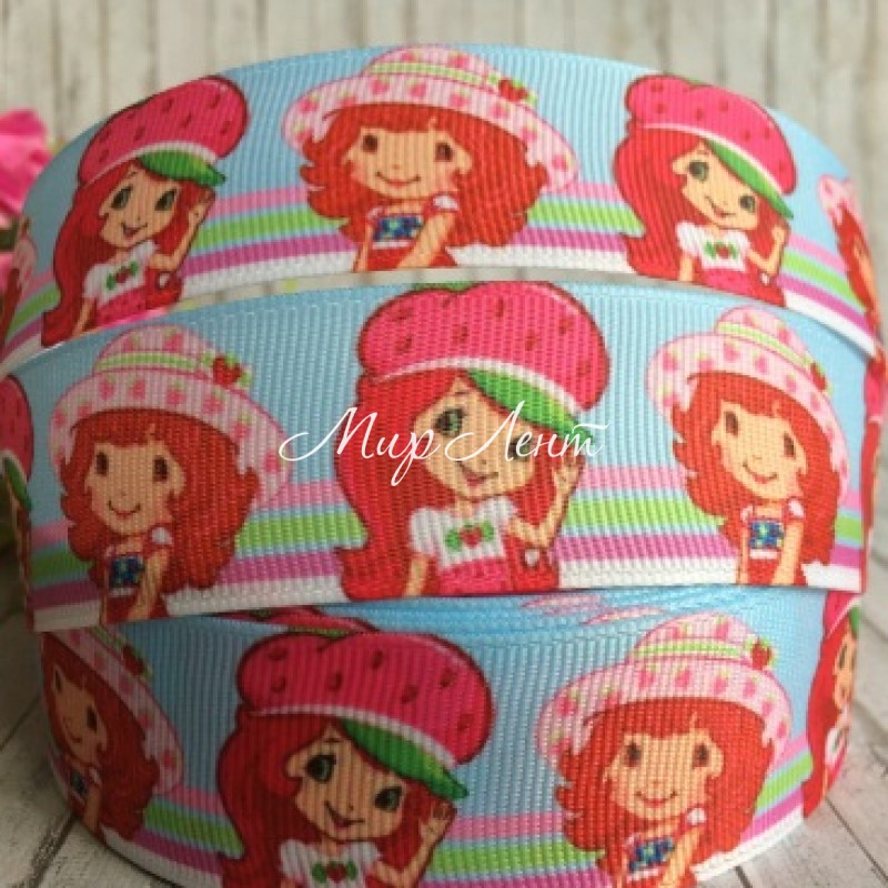 Репс 2,5 см, Шарлотта Земляничка, голубой, рулон 23 м