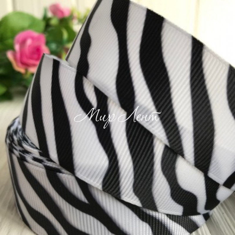 Репс 2,5 см, бело-черная зебра, рулон 18 м