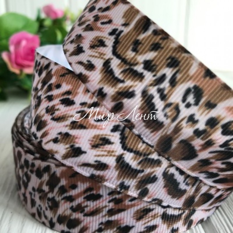 Репс 2,5 см, пудровый леопард, рулон 18 м