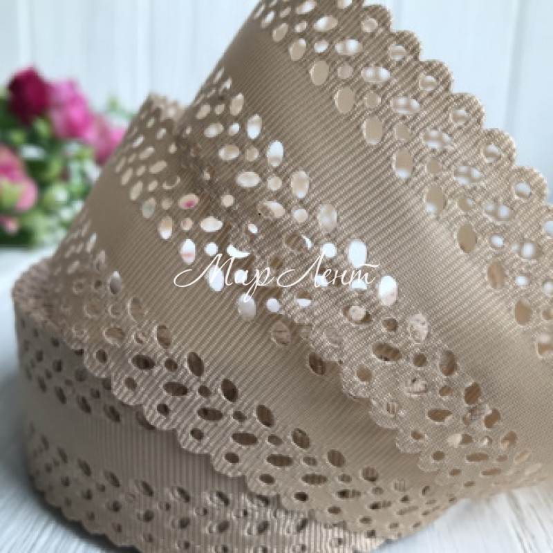 Репс 3,5 см, листик перфорация, бежевый, рулон 20 м