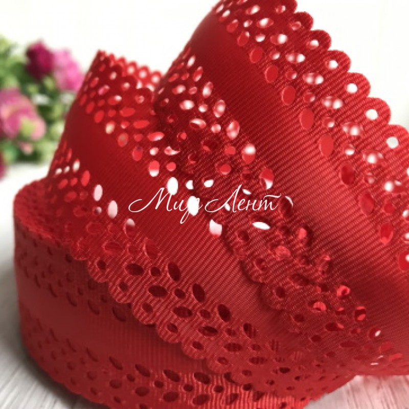 Репс 3,5 см, листик перфорация, красный, рулон 20 м