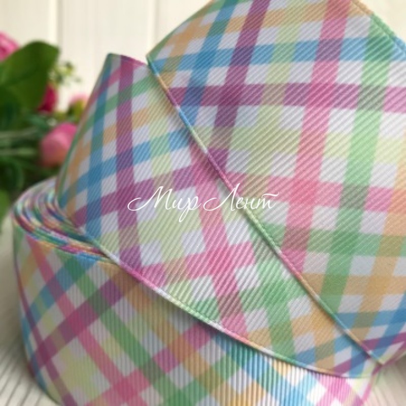 Репс 4 см, диагональная пастельная клетка на белом, рулон 23 м