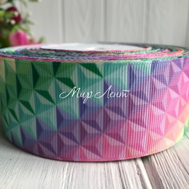 Репс 4 см, диагональные пастельные ромбы, рулон 23 м