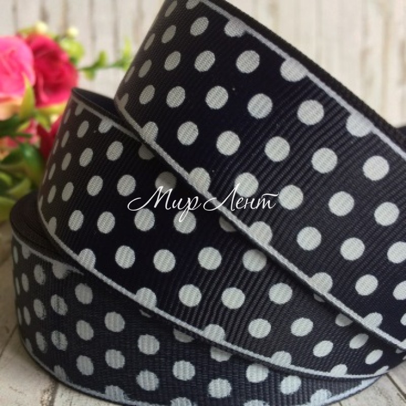 Репс горох/полоска, 2,5 см, сапфирово-белый, рулон 18 м