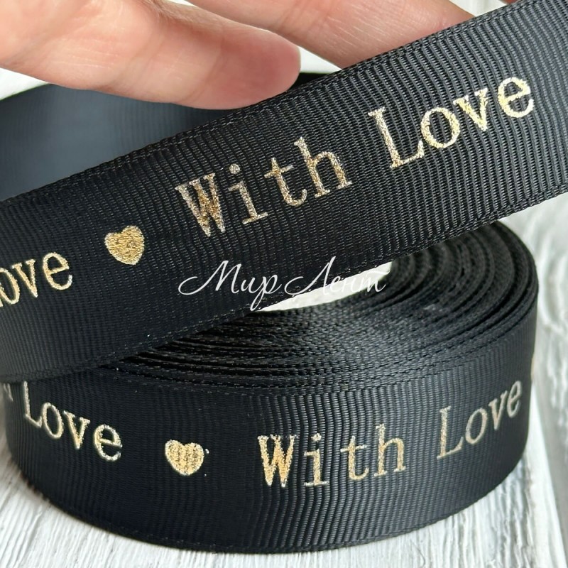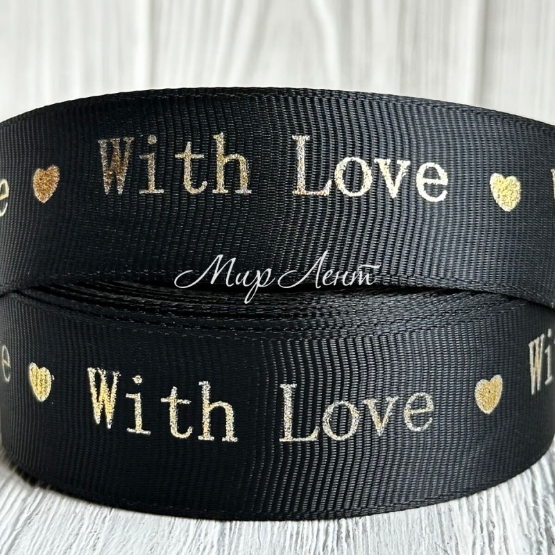 Репс "With love", 2,5 см, черный, рулон 18 м