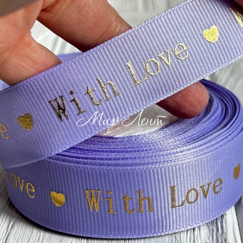 Репс "With love", 2,5 см, лиловый, рулон 18 м