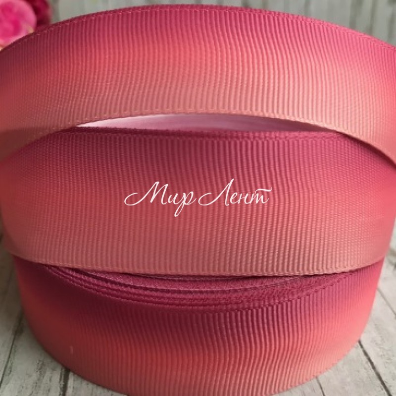 Репс Омбре 2,5 см, джеральдин-коралловый-пудровый, рулон 23 м