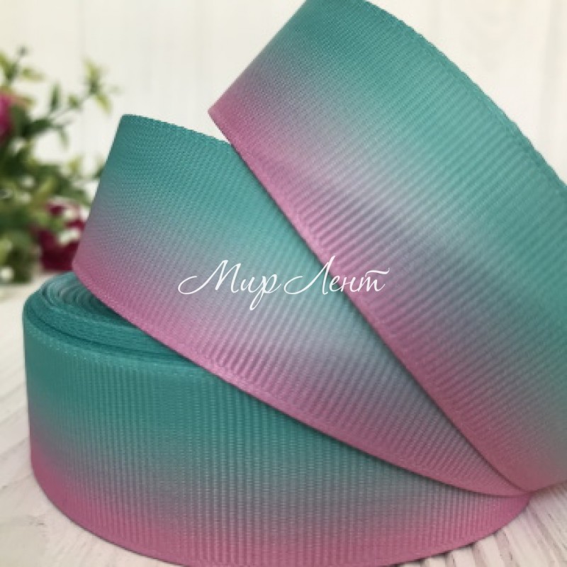 Репс Омбре 2,5 см, мятно-розовый, рулон 23 м