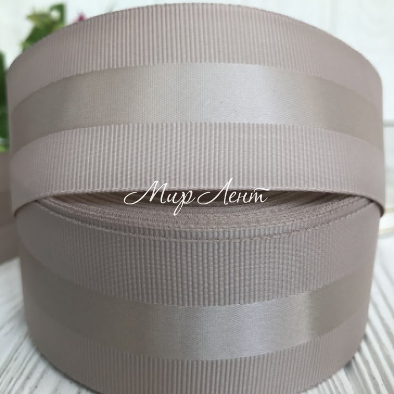 Репс с атласной полосой, 4 см, бежевый, рулон 23 м